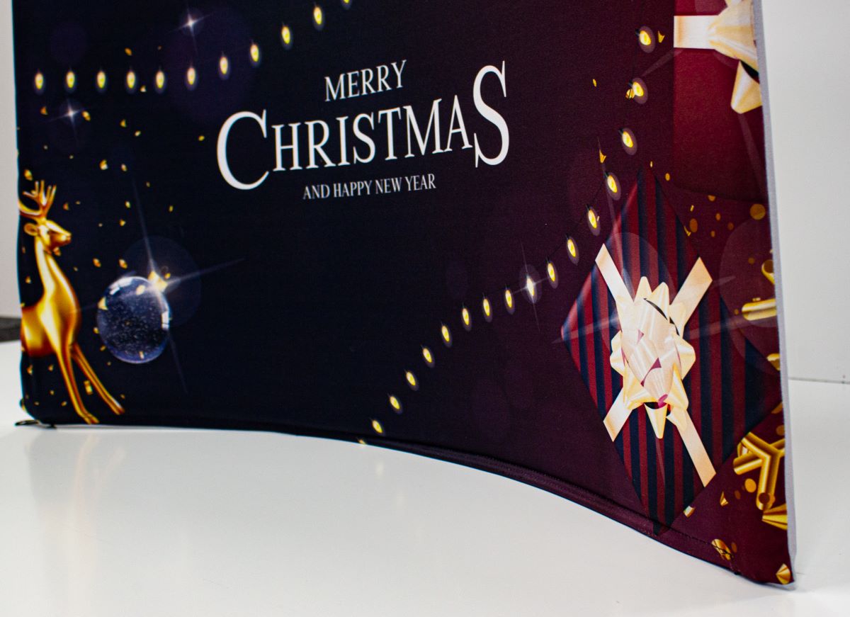 - Stretch printed graphics that simply slide over the aluminium frame and zip along the bottom give a taut sophisticated look.